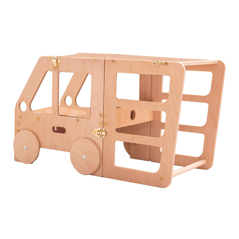 En allsidig kjøkkenhjelper formet som en tøff bil! Møbelet fungerer som stol og skrivebord eller som plattform med 2 trinn. Hjelp barnet opp i høyden for hjelp på kjøkkenet eller forenklet tannpuss. Kjøkkenhjelperen er laget av bjørkefiner og bøketre, belagt med en barnevennlig lakk for en jevn overflate og holdbarhet. Belastningskapasitet på 60kg.